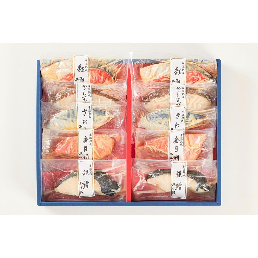 銀だら西京漬け70g×2、さわら西京漬け70g×2、紅鮭西京漬け70g×2、からすがれい西京漬け70g×2、金目鯛西京漬け70g×2