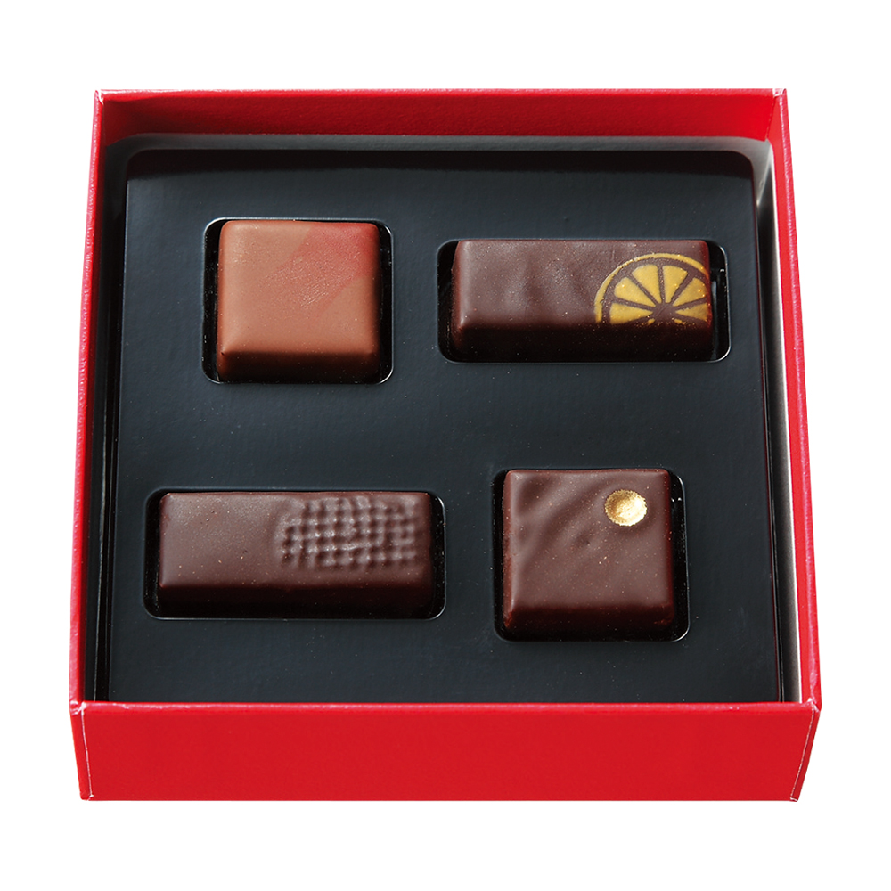 還暦を迎えたシェフによる、自身の集大成を踏まえての新たなる創生を表したボックス。自らの欧州修業やブランド開業、「畑からの菓子作り」などを踏まえ、素材選びからこだわり抜いて作りあげた4粒です。