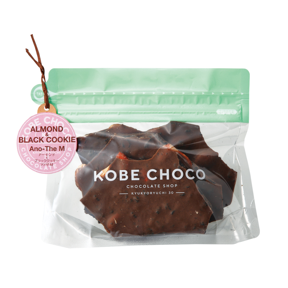 ナッツのようなコクのあるアノザMに、キャラメリゼしたアーモンドを混ぜ込みました。さらに、味と食感のアクセントとして、ブラックココアクッキーもブレンド。アーモンドのカリッとした食感と、クッキーのほろ苦さとザクッとした食感。多層の味わいを楽しんで。