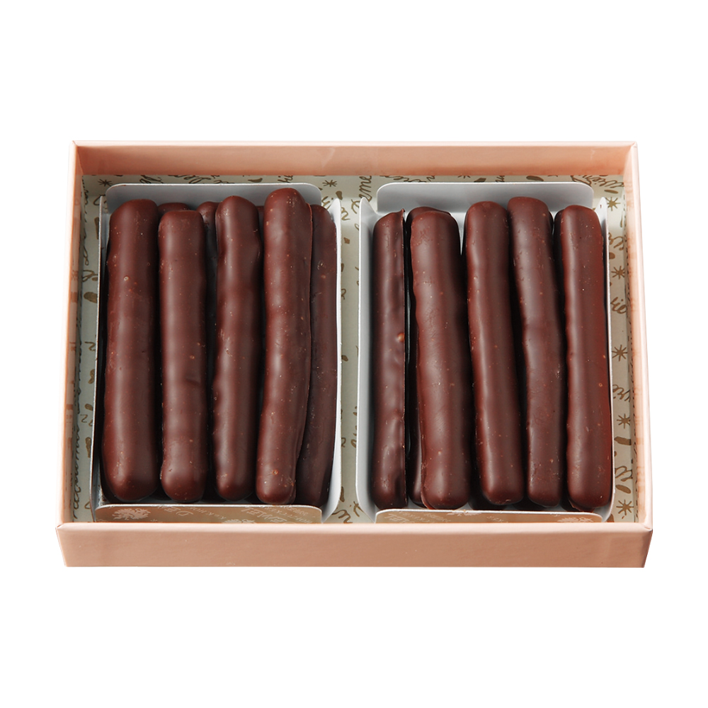 オレンジの皮を砂糖漬けにして、スウィートチョコレートでコーティングしました。オレンジピールの香り高く爽やかな味わいと、チョコレートの調和をお楽しみください。