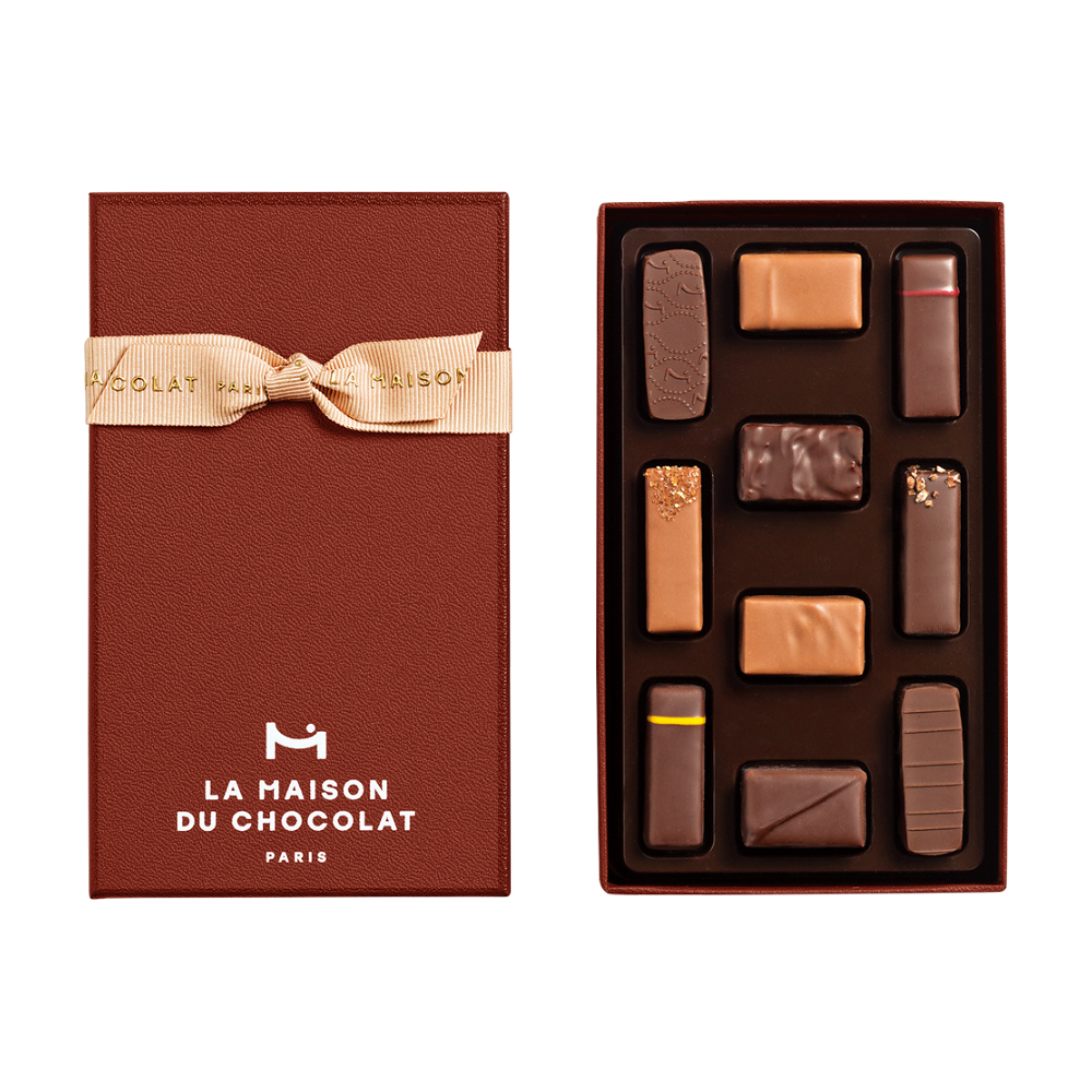 宝石箱のようなボックスに並ぶ、とくに人気のある10粒のチョコレート。ひと口サイズの「ボンボン・ドゥ・ショコラ」の中から人気のお味を詰合せました。ラ・メゾン・デュ・ショコラの最も代表的なチョコレートギフト。大切な方への贈りものや手土産におススメです。