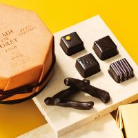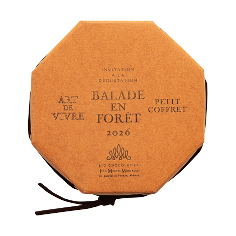 森の静けさに包まれ、木漏れ日に導かれるように--「Balade en foret(バラード・オン・フォレ)」は、フランス語で「森を歩く」を意味する言葉。自然と調和した暮らし、自由に開かれた心をテーマにした、ショコラのアソートです。フランボワーズ、ライム、マンゴー、パッションフルーツなど、森の恵みを思わせる瑞々しいフルーツに、香り高いベルガモットティー。それらをガナッシュやプラリネに仕立て、芳醇なショコラと繊細に組み合わせました。使用するカカオは、ジャン=ミッシェル・モルトローが支援するドミニカ共和国・エデン農園など、サステナブルな農園で育まれたシングルオリジンカカオ。毎年異なるテロワール(風土)の個性を楽しめるのも、このアソートならではの魅力です。素材の持ち味を最大限に引き出すショコラティエの技が、一粒一粒に息づいています。さらに人気のオランジェットを添えて、より一層豊かな味わいに仕上げました。森の恵みをたどるように、育てる人、つくる人、味わう人--ショコラを通じてめぐる幸せのかたち。「アール・ド・ヴィーヴル(暮らしの芸術)」を大切にするフランスの美意識と、アルティザン(職人)へのオマージュを込めたパッケージでお届けします。