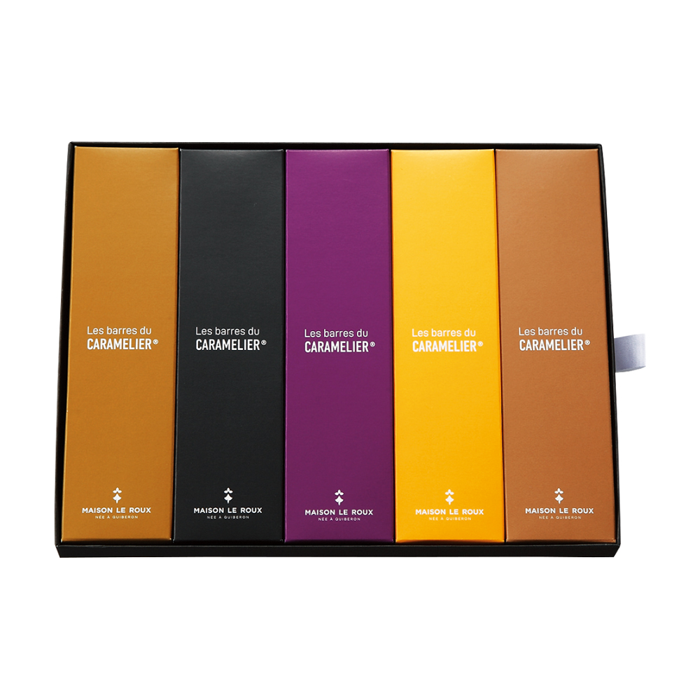 フランス〈メゾン・ルルー〉の定番キャラメルを薄く引き伸ばし、ショコラで繊細に包みました。選び抜かれたフレーバーが口の中で美しく重なり合い、芸術的な余韻を残します。カシスやタタンなど5つの味わい。