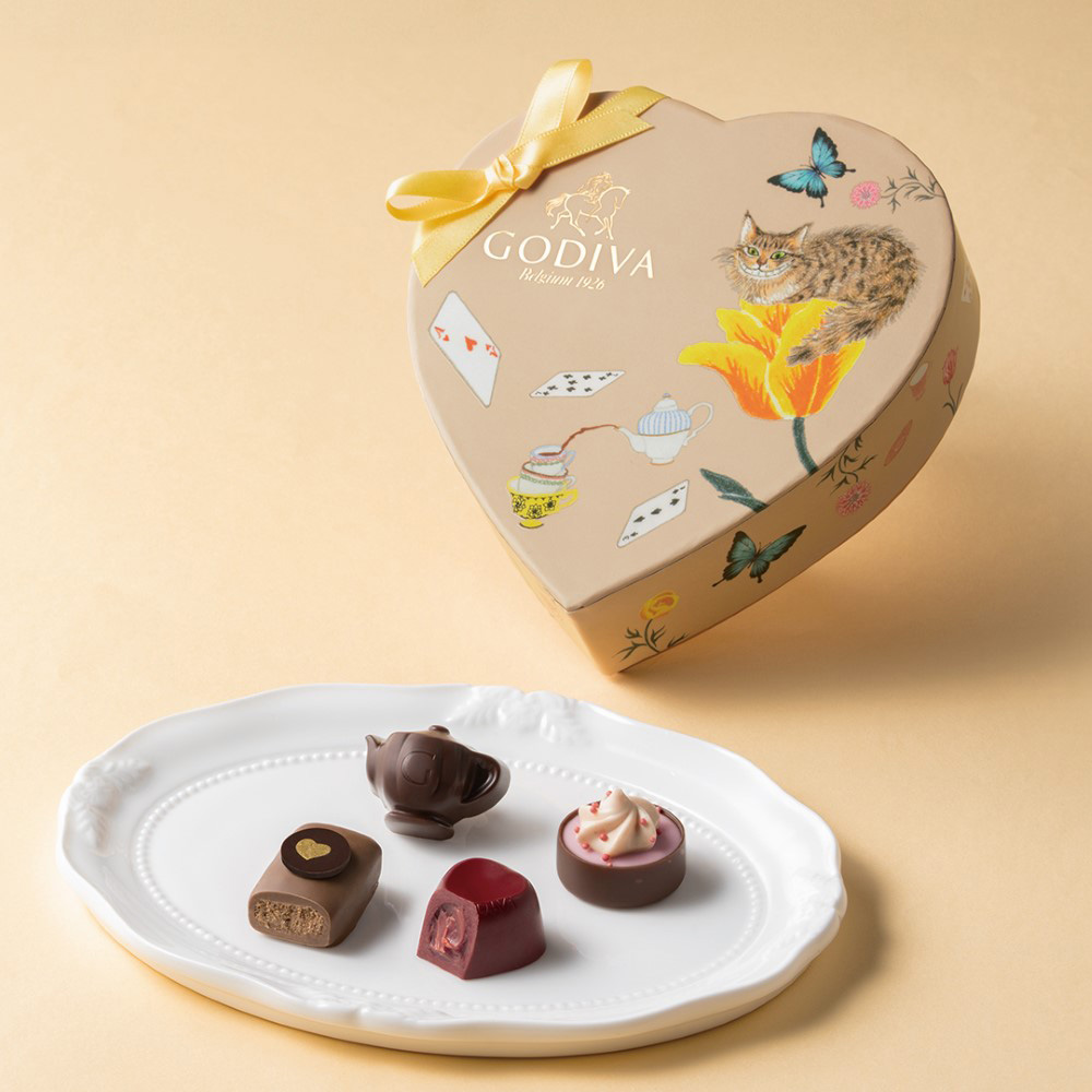 『不思議の国のアリス』の印象的なティーパーティをイメージした、キュートなチョコレートコレクション。紅茶やカップケーキなどをモチーフにした限定ショコラを、トランプやティーセット、チェシャ猫を描いたパッケージに詰め合わせました。