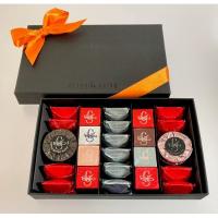 トリノ本店の人気商品を集めたセレブリティお気に入りの26粒入りアソートセット。ヘーゼルナッツと高品質カカオを使用したジャンドゥーヤから作り出す「トリノット」はまさに至福の一粒。「トリノットマキシモ」はヘーゼルナッツの分量を増やすことによってさらに濃厚な味わいを楽しめます。人気のクレミーノシリーズには海塩とオリーブオイルを使用した「アル・サーレ」、コーヒー豆を粗挽きし、本場のカプチーノを再現した「アル・カプチーノ」、ヘーゼルナッツ好きにはたまらないヘーゼルクリームをサンドした「クラシコ」、濃厚なジャンドゥーヤにビターでアクセントを入れた「フォンデンテ」、海塩を使いキャラメルをイタリア風にアレンジした「アル・カラメッロ」、新作コイン型ビターには、ジャムと煮詰めた果物の甘さとラム酒の香りを感じられる「グアテマラ70%」。カカオ比率75%のコイン型「ビターブレンド」もほどよい酸味と上品な味わいでコーヒーやワインと相性がとても良いです。26粒入りアソートセット。