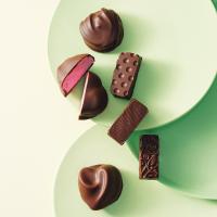 ライムなどのとろけるフォンダンギモーブと、コンフィ入りのパートドフリュイに、10種類をブレンドしたダークチョコレートをコーティング。果実の風味が広がり、チョコレートの香りが余韻を残す。味わいに奥行きのある、華やかなアソートです。