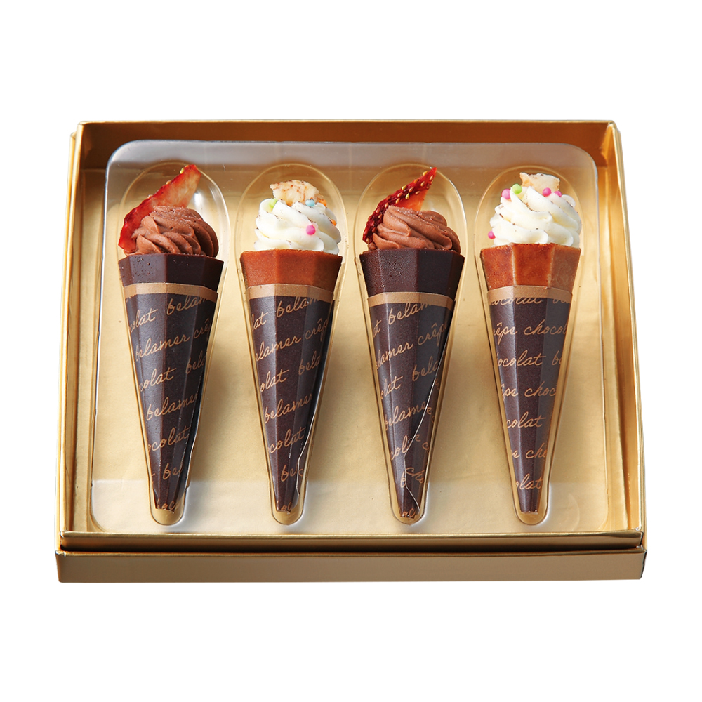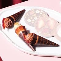 クレープ生地を練り込んだプラリネチョコクリームをチョコレートのカップで包んでショコラホイップで仕上げたクレープスタイルの新作ショコラ。