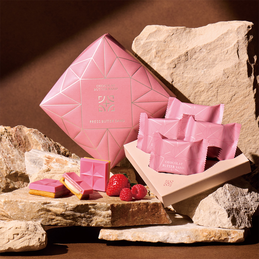 人気の冬季限定商品「ショコラバターサンド」から、ショコラとベリーを贅沢に楽しめる新作が誕生。いちご風味のキャレショコラを割ると、甘酸っぱいトリプルベリーガナッシュがとろりと溢れ出し、濃厚なショコラと華やかな果実の香りが広がります。PRESS BUTTER SANDならではのこだわりのバタークッキーと口どけの良いバタークリームが全体を包み込み、幾層もの味わいが絶妙に調和。ショコラ×ベリーのときめくマリアージュを、心ゆくまでお楽しみください。