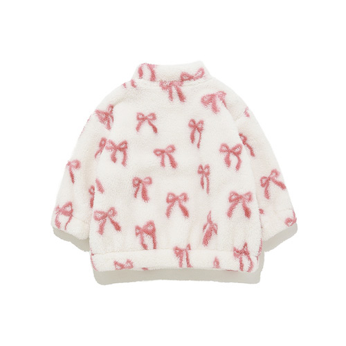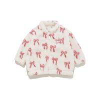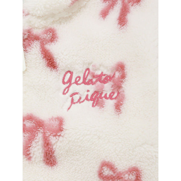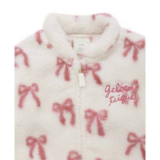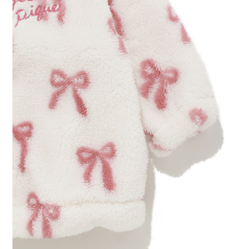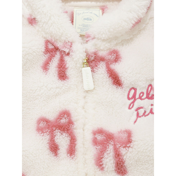 [Fabric]柔らかいフリース素材を使用しています。[Design/Styling]リボン。子どもたちがときめくモチーフをあしらった、ギフトにもおすすめしたいBABYシリーズです。ふっくら温かな風合いのフリース素材を使用した、お外にも着用していただけるスタンドカラーブルゾン。重ね着しやすいゆとりのあるサイズ感で、胸元にロゴ刺しゅうを添えました。色はリボン柄のピンク。同シリーズのアップリケパンツやワンポイントプルオーバーを合わせたり、KIDSサイズとのリンク・コーディネートもお楽しみいただけます。