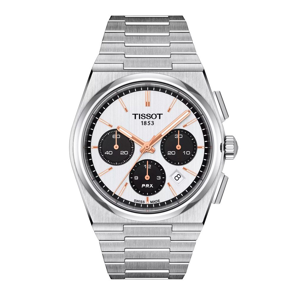 1978年に誕生したティソのケースに21世紀の機能を詰め込んだPRXクロノは、デザインにこだわる人のために作られた、時計ファン必携の一品です。この42mmのサテン仕上げのスチールウォッチは、PRXの滑らかで角ばったフォルムを踏襲し、いわゆる「パンダ」ダイアルで1970年代のゆったりとしたスポーツウォッチスタイルをさらに高めています。PRXクロノは、バルジューA05.H31 キャリバーを搭載し、クラシックな3時、6時、9時位置にクロノグラフのダイヤルレイアウトと60時間の延長パワーリザーブを備えたデザインになっています。