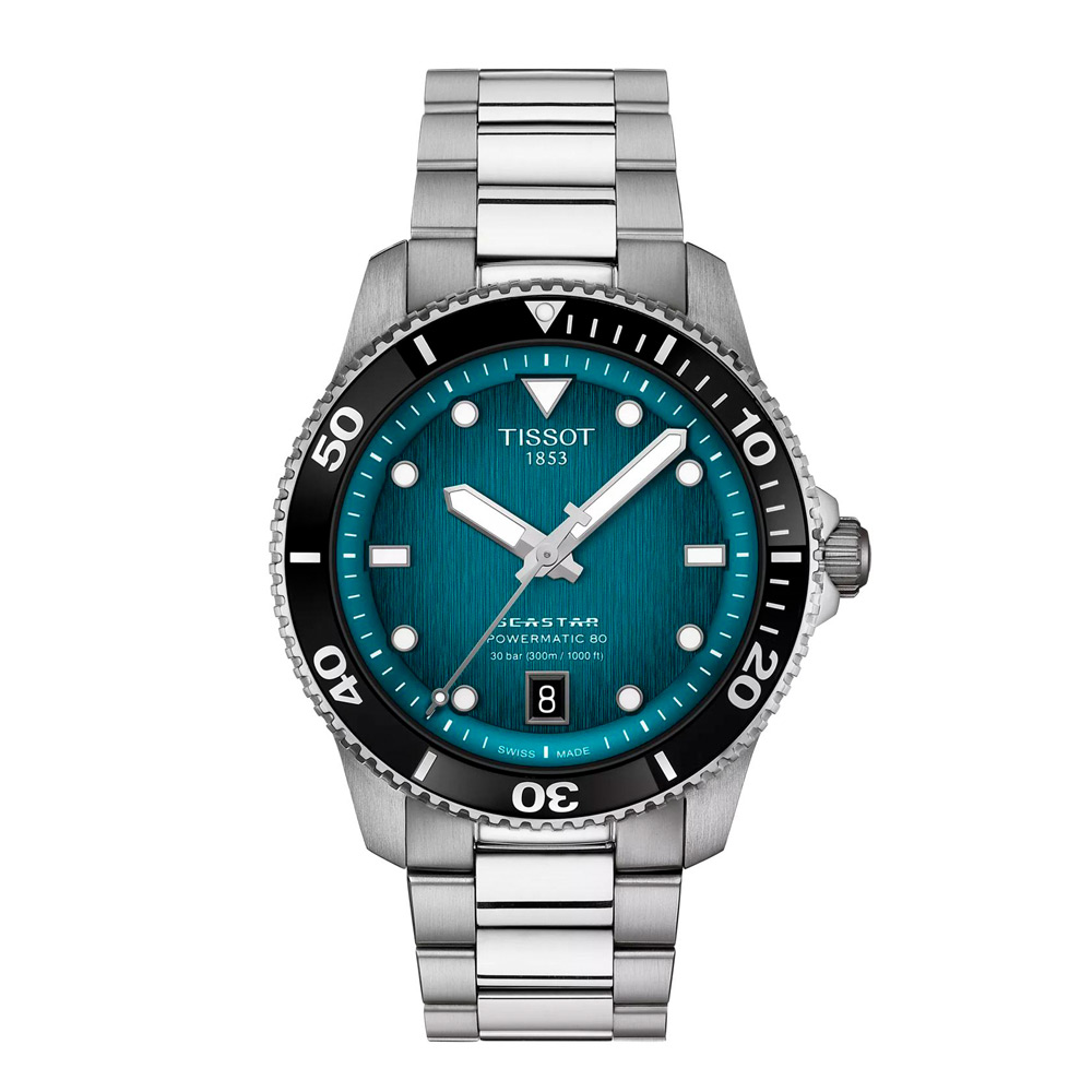 ティソのシースター 1000 40mmに新たに加わったこのエディションは、パワーマティック80を核にした堅牢な40mmケースを採用しています。ケース側面に加えられたわずかなくぼみと、縦方向のヘアライン加工が施されたダイアルは、よりコンパクトで洗練された外観を実現。黒色のグラデーションがかかった外観が全体の立体感と高級感を高めています。スポーティでありながら力強い個性を演出するこのタイムピースは、300メートル(1000フィート)までの防水性能と、スーパールミノヴァ(R)コーティングが施された針とインデックスにより、暗い場所でも視認性が高く、あらゆるアクティビティをサポートします。ステンレススチール製の逆回転防止ベゼルには、カラープリントが施されたミネラルガラスリングを備え、5つの異なるモデルがそれぞれ独自の美しさと個性を放ちます。このコレクションは、そのスポーティかつ大胆な魅力を保ちつつ、各バリエーションで唯一無二の美を実現しています。