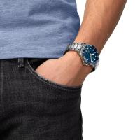 TISSOT シースター1000 クォーツ 40mm は、一目見ただけでスタイル、パフォーマンス、多用途性を表現しているモデルです。どのモデルもスイスのウォッチメイキングのノウハウと永遠のデザインを融合させ、エレガンスとテクノロジーの調和を表現しています。この汎用性の高いケースサイズは、昼夜を問わず使えて、シックで洗練された時計をお探しの方に最適なデザイン。従来の 36mm、45.5mmの既存モデルと同様、その名称は1,000フィート(30気圧、300m相当)の防水性能に由来しています。一方向回転ベゼルは水中での行動を確実に計測するために使用され、針とアワーマーカーにはスーパールミノバ(R)を使用し暗い場所での視認性を高めています。ストラップとブレスレットは、ティソの使いやすいクイックストラップチェンジシステムを使用して交換することが可能。その日の気分やシーンに合わせて、自分だけの時計にカスタマイズすることができるモデルです。