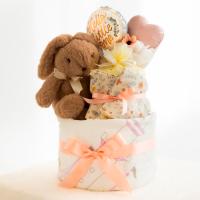身長計タオルやガーゼミニタオルといった実用ギフトと一緒に、ぬいぐるみを赤ちゃんのファーストトイとしても贈れるダイパーケーキセットです。身長計タオルは大きくなる赤ちゃんの成長を楽しめます。おくるみやお昼寝ケットとしてもご使用いただけます。