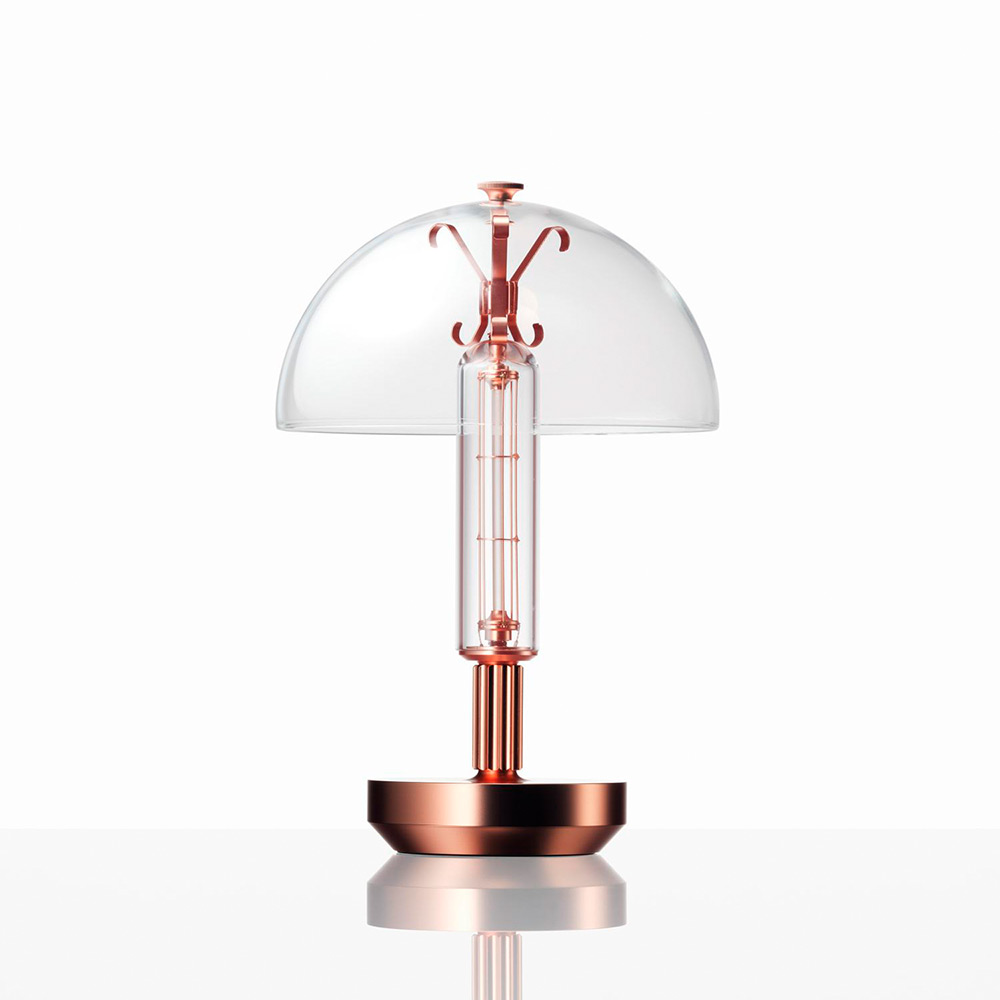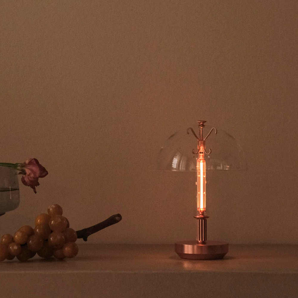 Barcarolle は、人の暮らしや文化が歴史の中で創り上げてきた要素からインスピレーションを受けています。古くから残るヨーロッパの美しい街灯、歴史的な教会や施設といった建築、そこにある階段や柱のディテール。これらが持つある種の装飾性を再解釈することで、時代や時間軸が溶け合い、クラシックとモダンが一つに調和したかのようなポータブルランプの姿が生まれました。高い技術で作り上げられる、一つ一つの金属部品の繊細なディテールと、空間に光のシルエットを描き出すガラスシェードは、まるで中世の静物画に描かれるような静謐な存在感と温かな光を生み出し、現代の暮らしに灯る心地よい光のアクセントとなります。光源は、直接見ても眩しくなく、それでいてまるで温度を感じるような温かな光を灯します。