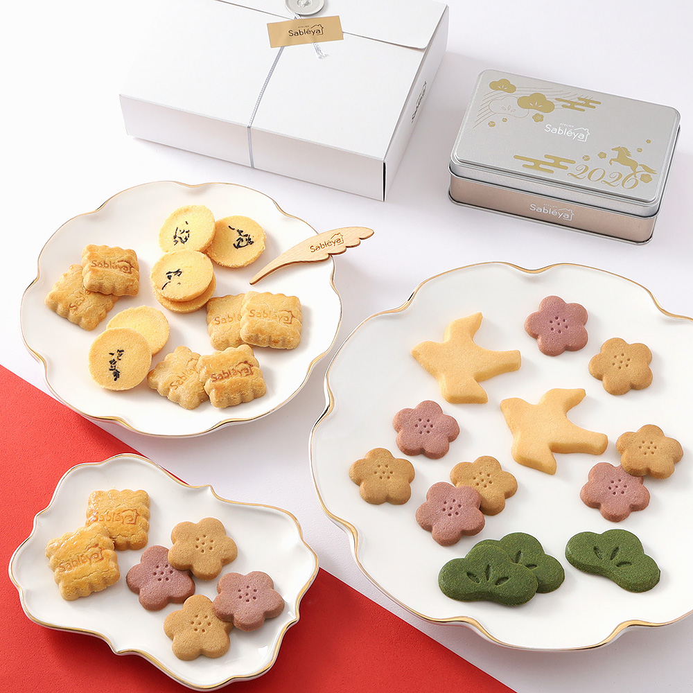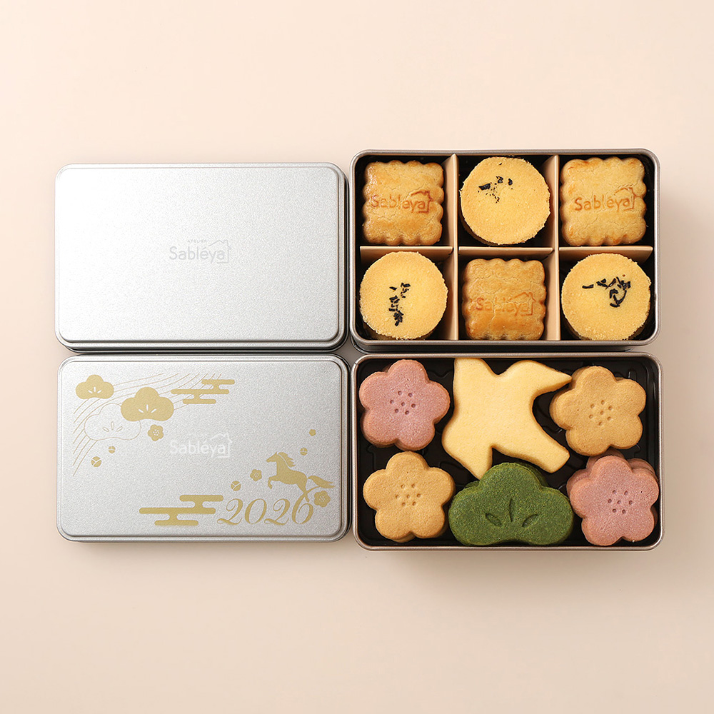 この時期だけの「迎春のサブレ」と定番人気の「バターサブレのアソート」の2缶セット