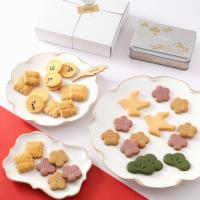 お正月らしく干支をデザインしたかわいい缶に松や梅など縁起物をかたどった彩り豊かなサブレを詰め合わせた「迎春のサブレ」と、食感の異なる2種類のバターサブレ(焦がしバターのサブレ・バターリッチのサブレ)を詰め合わせた「バターサブレのアソート」の2缶セットです。※本商品はブランドオリジナルパッケージでお届けします。「お年賀」のしはおつけできません。