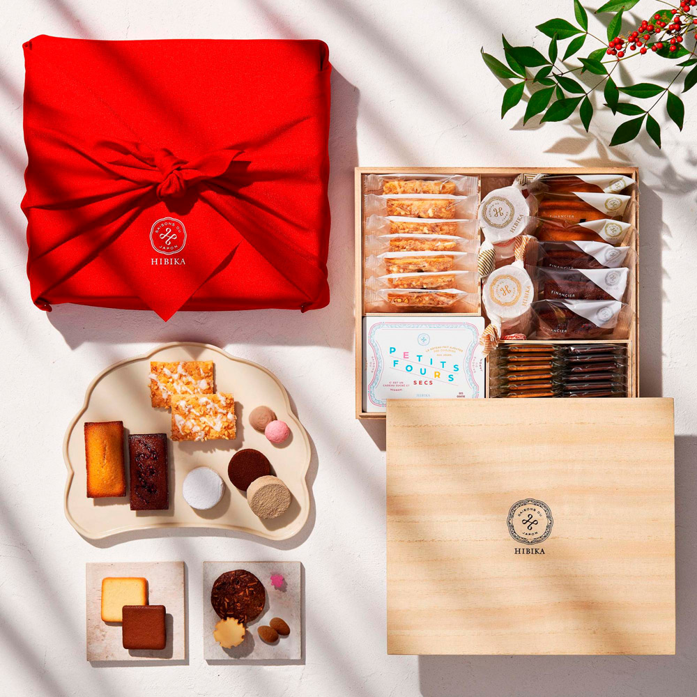 新年のご挨拶におすすめの、HIBIKA人気の焼き菓子を詰め合わせた華やかな贈りもの