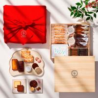 サクサクに焼き上げたパイ「白雪の菓」をはじめ、しっとりした食感の「冬のフィナンシェ」やほろほろ繊細な口どけの「冬のクッキー(ポルボロン)」、サックリした「冬のラングドシャ」を特製の木箱に詰め合わせました。色とりどりの焼き菓子が入ったかわいらしいミニ缶も。※本商品はブランドオリジナルパッケージでお届けします。「お年賀」のしはおつけできません。
