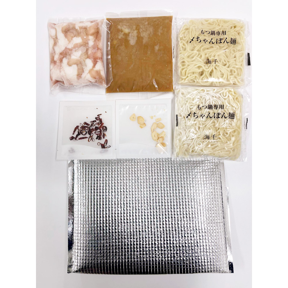 牛もつ300g、鍋の素240g、ちゃんぽん麺150g×2、スライスガーッリック1.8g、唐辛子0.6g