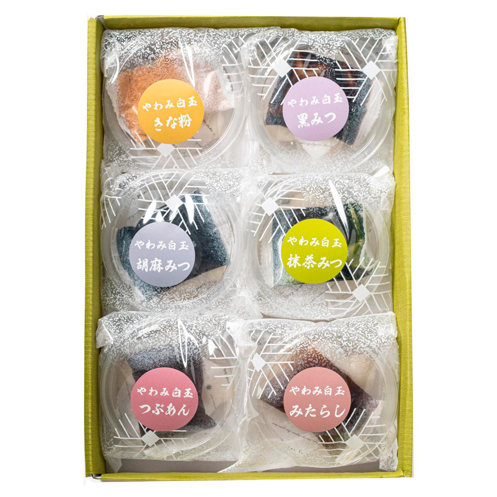 やわみ白玉(きな粉・黒みつ・つぶあん・抹茶みつ・みたらし・胡麻みつ各1個)計6個
