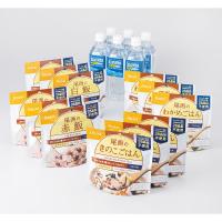 きのこごはん・わかめごはん・白飯・赤飯各100g×3袋、保存水(立山の天然水)500mL×6本