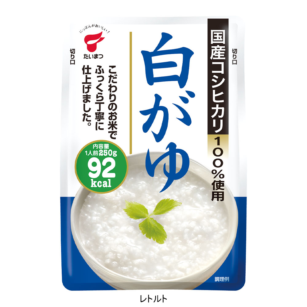 国産のコシヒカリを100%使用し、ふっくら丁寧に仕上げたこだわりの白がゆです。