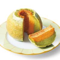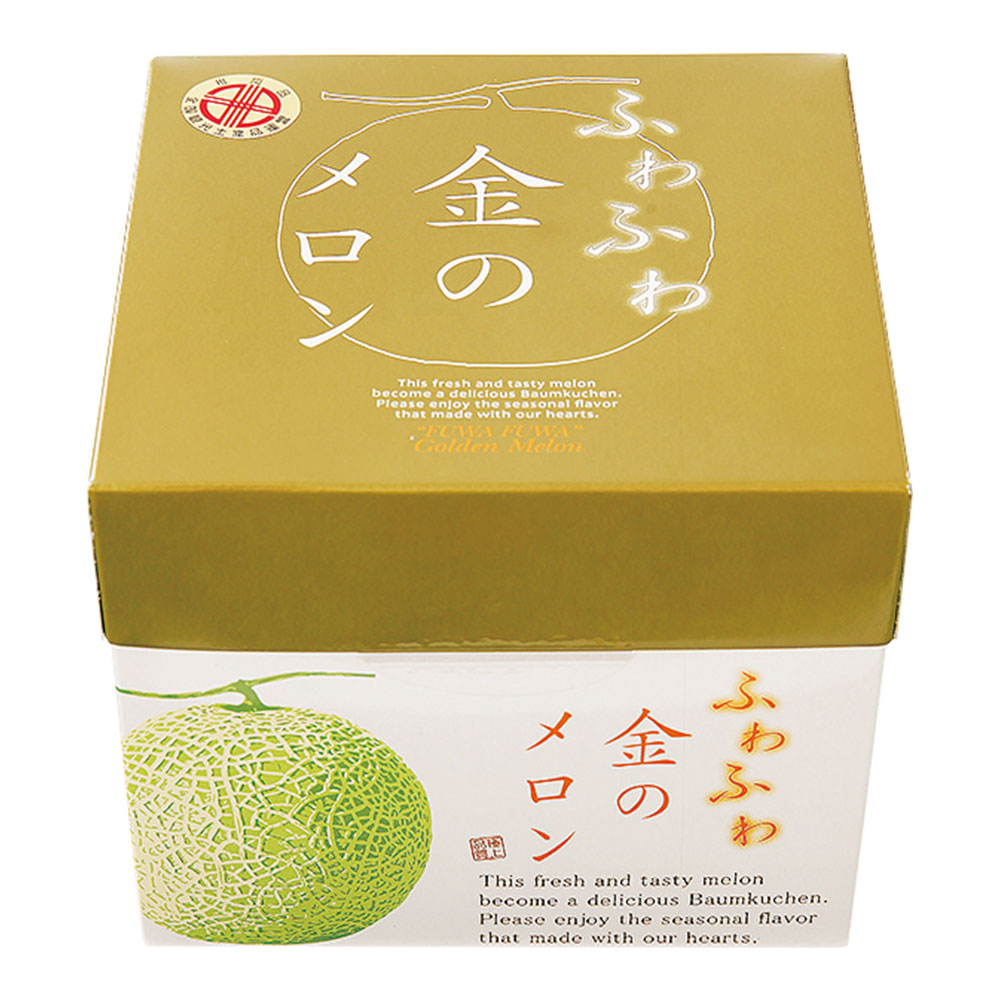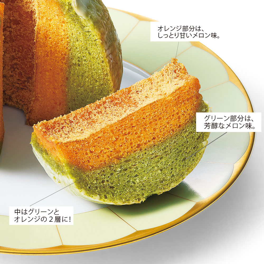 見た目も味も香りもメロンのバームクーヘン。生産量日本一を誇る茨城県産メロンの果肉とピューレを使用しています。