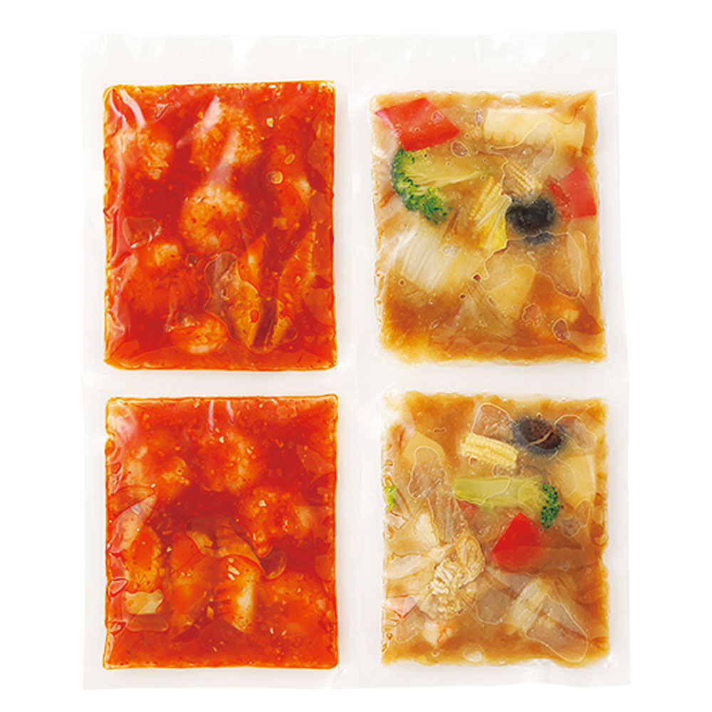 えびといかのチリソース・ふかひれ入り八宝菜各150g×2袋、2種計4袋