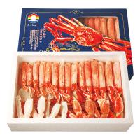 カナダまたはロシア産原料の大きなサイズのずわいがにを国内で加工。脚は殻をむいてハーフポーション加工、爪、爪下、肩は食べやすく半分にカットしました。