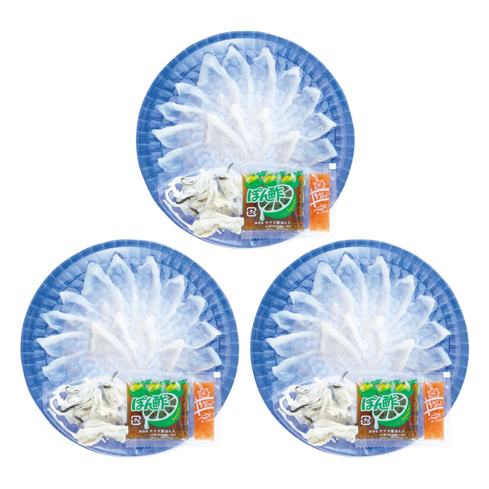 とらふく刺身20g・とらふく皮湯引き10g・ぽん酢・もみじおろし(プラ皿19cm)×各3セット