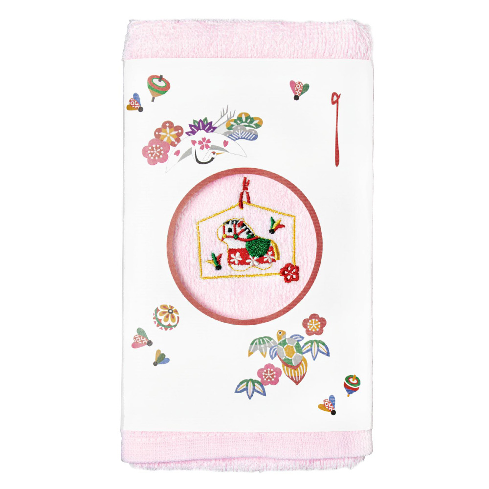 【お年賀】干支刺繍フェイスタオル5枚セット(ピンク)