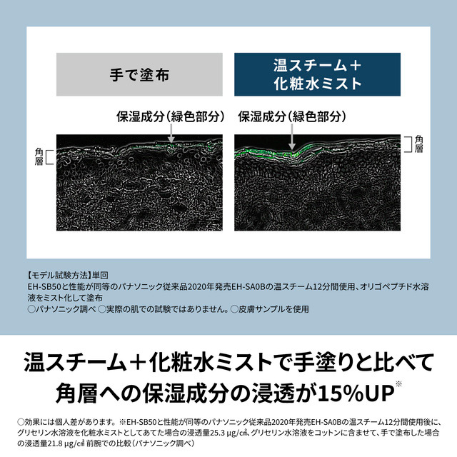 スチーム・ミストの種類:ナノサイズ濃密ダブルスチーム、化粧水ミスト、冷ミスト