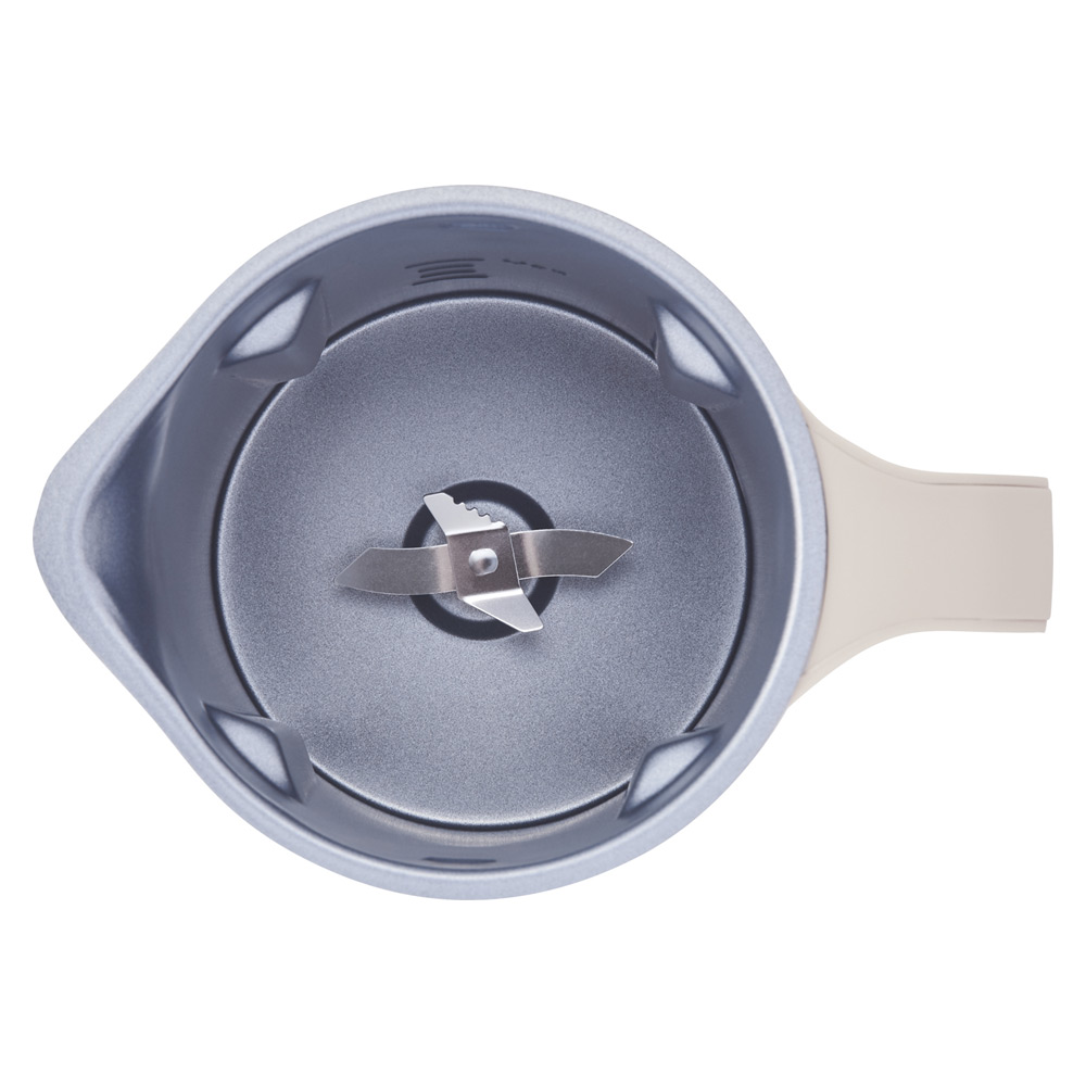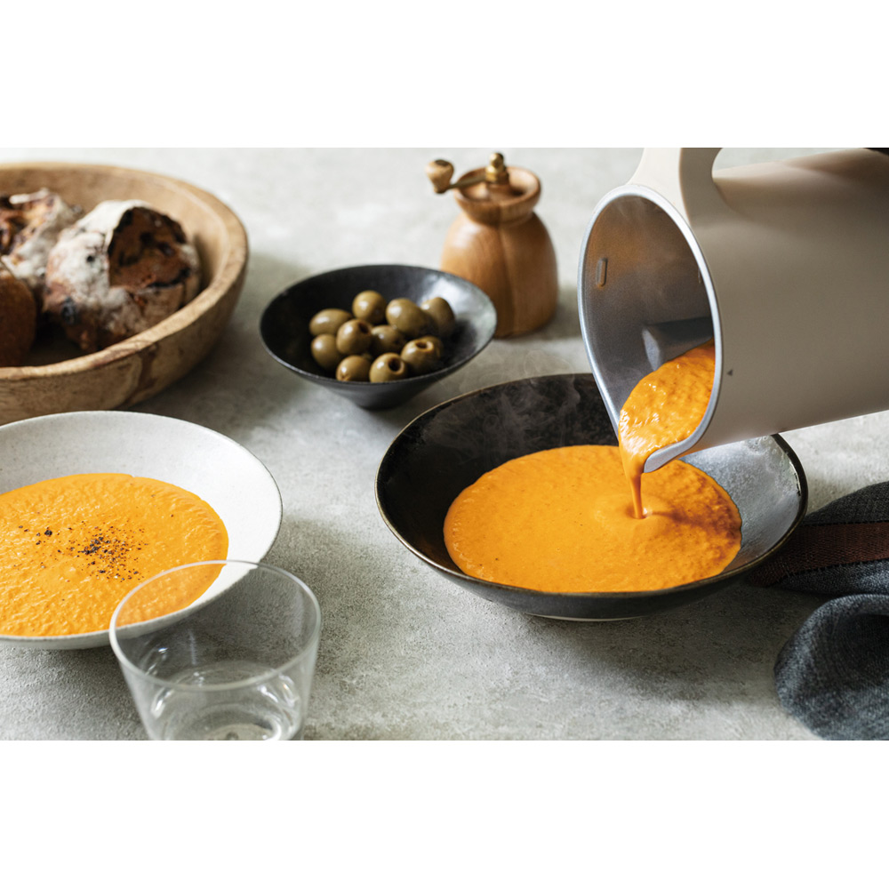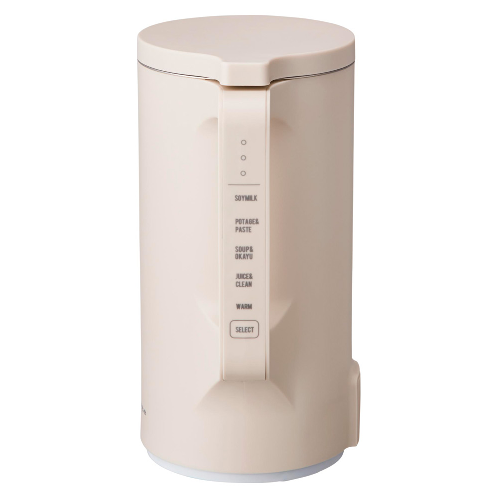 材料の刻み具合や加熱温度を、5種類の調理モードごとにコントロールしながら撹拌。なめらかなポタージュや具材の形を残した食べるスープ、おかゆ、豆乳など、手間なく簡単に作れます。家庭用の氷も砕くことができるので、スムージーなどの冷たいメニューもOK。保温できるモードも搭載。容量約600ml。