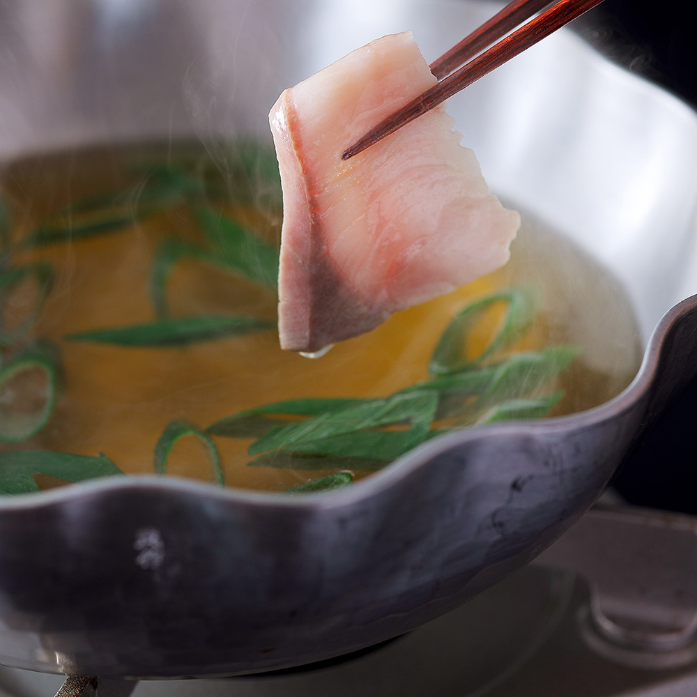 上質な脂がたっぷりと乗った濃厚な味わいです。このお鍋では冷凍ながらも鮮度の良さとその旨味をお愉しみいただけます。下鴨茶寮特製の出汁とあわせて、より一層の美味をご堪能ください。