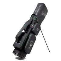 <ホワイト>はオフホワイトのボディにオレンジとパープルのアクセントが絶妙なバランスで調和したジェンダーレスなスタンド式キャディバッグ。アリゾナ・フェニックスのバスケットボールチームをイメージした刺しゅうやパイピングカラーもポイント。<ブラック>は、グラファイトグレーのボディにグリーンのアクセントが映える落ち着いた大人のカラーリング。両サイドのマチ付きの成型ポケットは、レインウエアなどかさばるアイテムも収納。フロント部は、小物収納に適した2段構造のポケットを配置。上段はゴルフボール1ダースが収まるサイズ感、下段にはファスナー付きの内ポケットを備え、ティーやマーカーなどの小物整理に。グローブを貼り付けられるタグ、タオル掛けリングも装備。強固で高級感のあるハンドルを採用。ネームプレートは、DEVEREUXのアイコンであるスカルキャディーが際立つオリジナルデザインを付属。