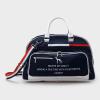 ロゴデザインが映えるトリコロールカラー基調のボストンバッグ