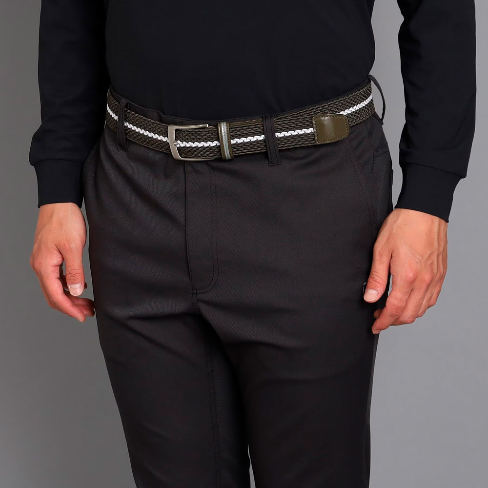 細かいサイズ調整が可能な伸縮性のあるメッシュベルト。シンプルで落ち着いた色柄なので、普段使いから幅広いスタイリングに対応します。日本製