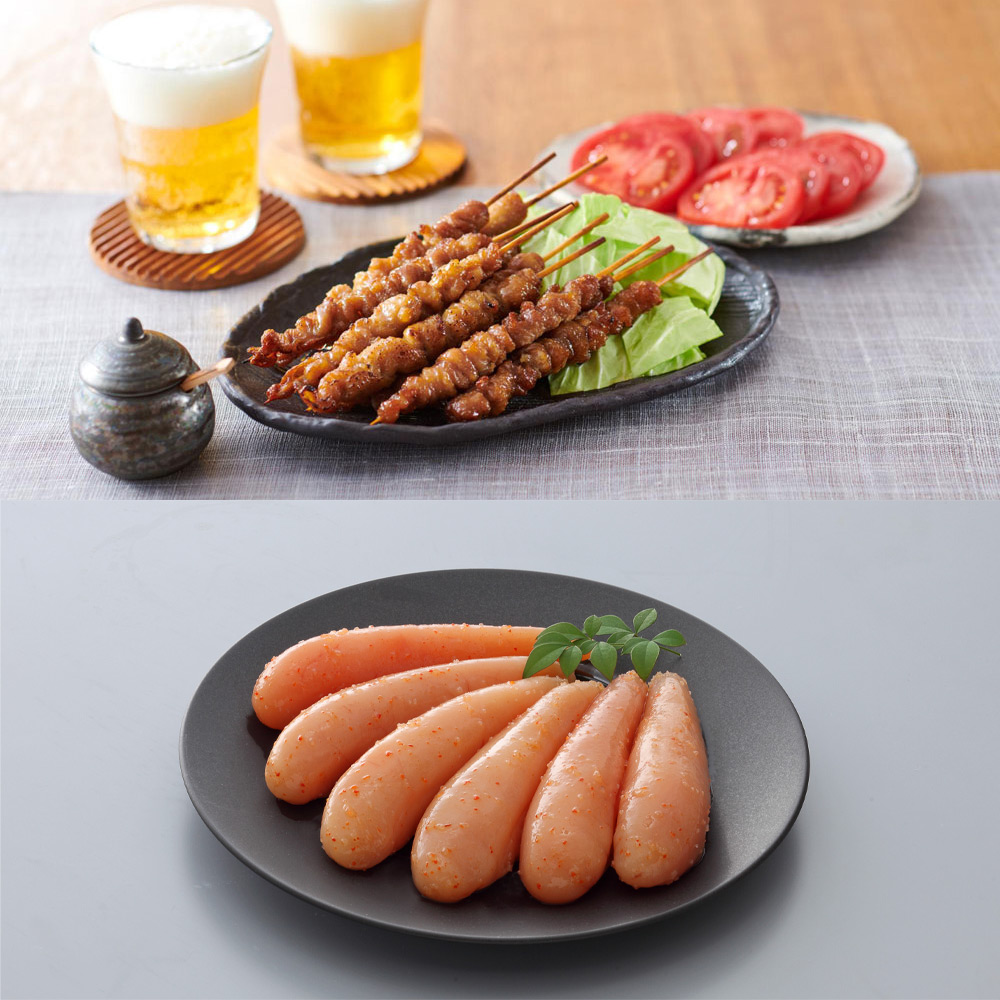 匠のたれにじっくり168時間漬け込んだ辛子明太子と「博多もつ鍋やまや」名物人気メニューとり皮をセットにしました。
