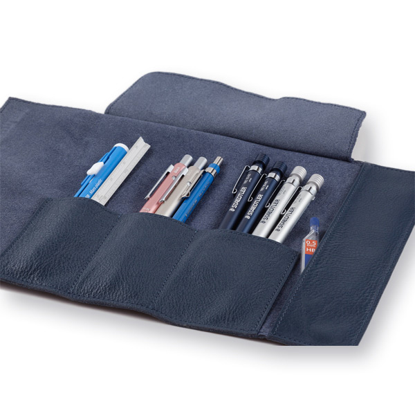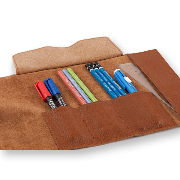 柔らかい本革にこだわった、仕切り付きのロール型ペンケース