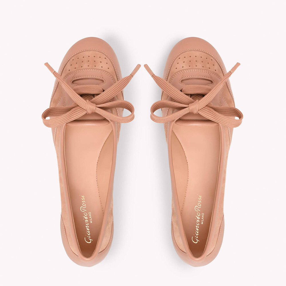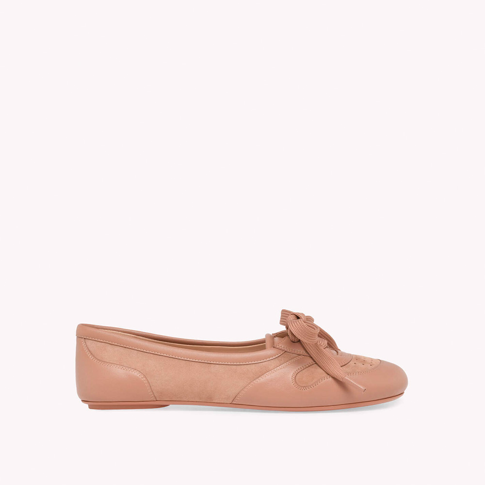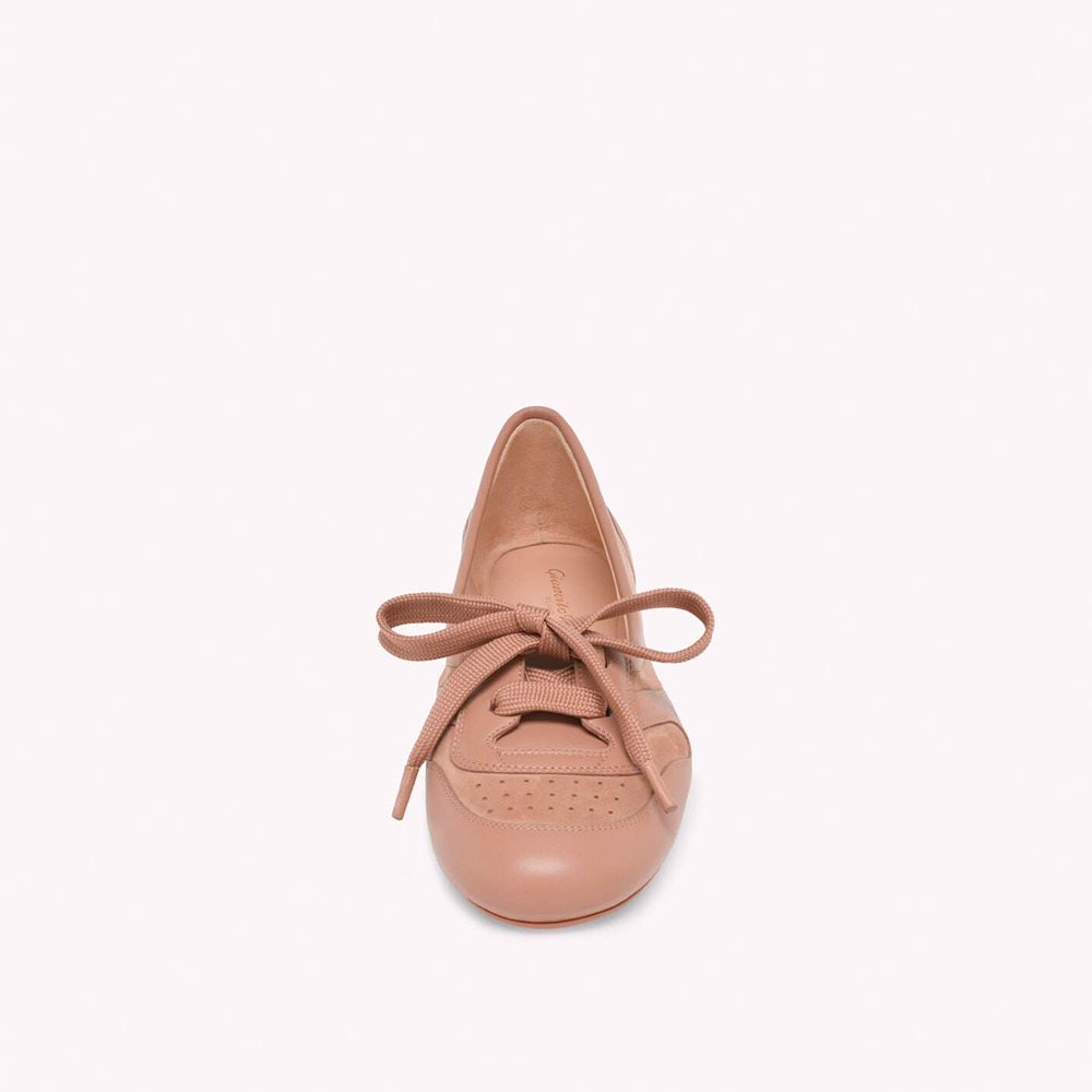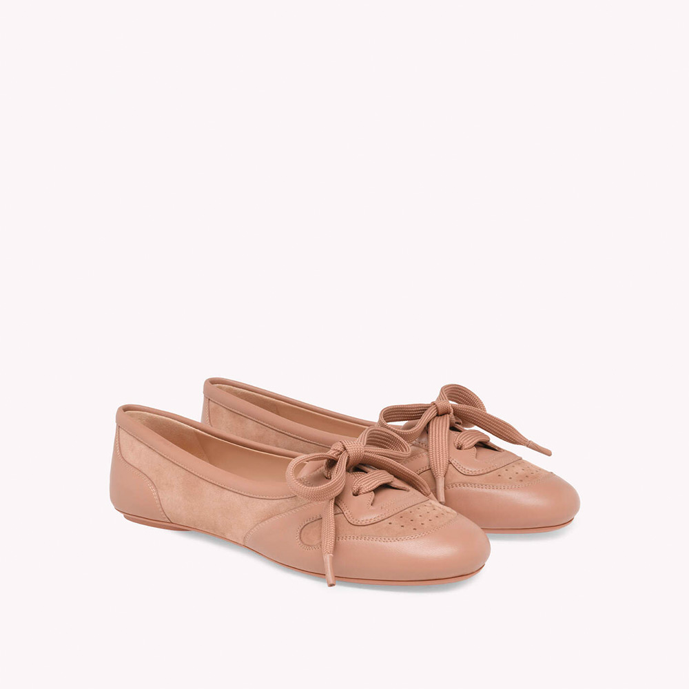 レザーとスエードで丹念に作り上げたバレリーナスタイルのフラットスニーカー、Vault。トーン・オン・トーンのシューレースとラバーソールを備えた、ラウンドトゥのモデルです。ハンドメイドで仕上げました。