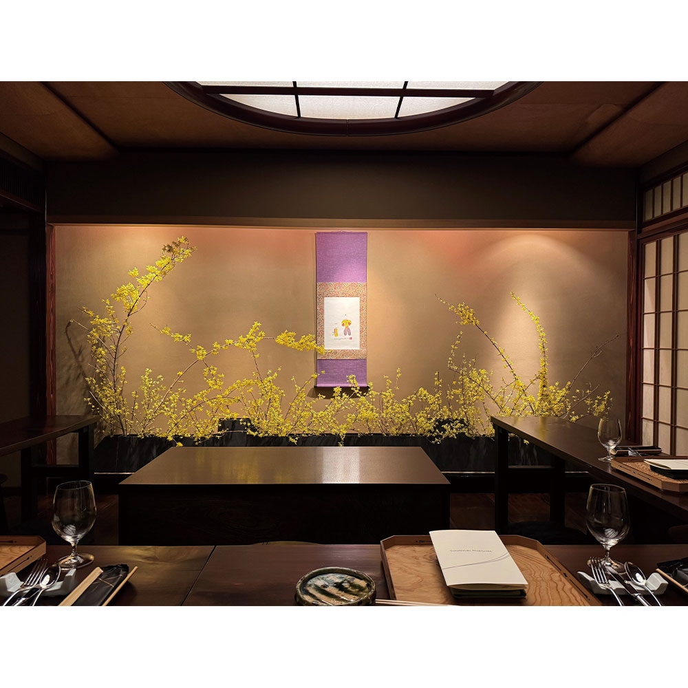 和とフレンチを融合させた料理が自慢の「御室」。茶室でいただくフレンチは、その都度異なるメニューが提供され、五感を刺激してくれます。