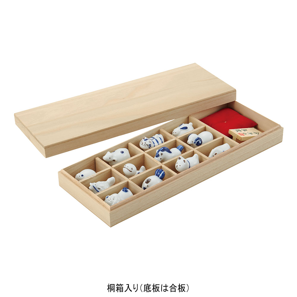 (約)干支1点:幅3.5~5.4×奥行2.1~3.1×高さ2.4~3.5cm、桐箱:幅33×奥行12.5×高さ4.6cm