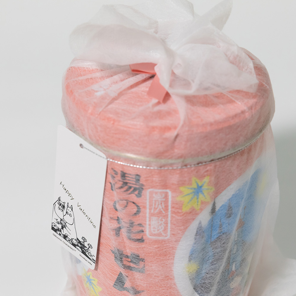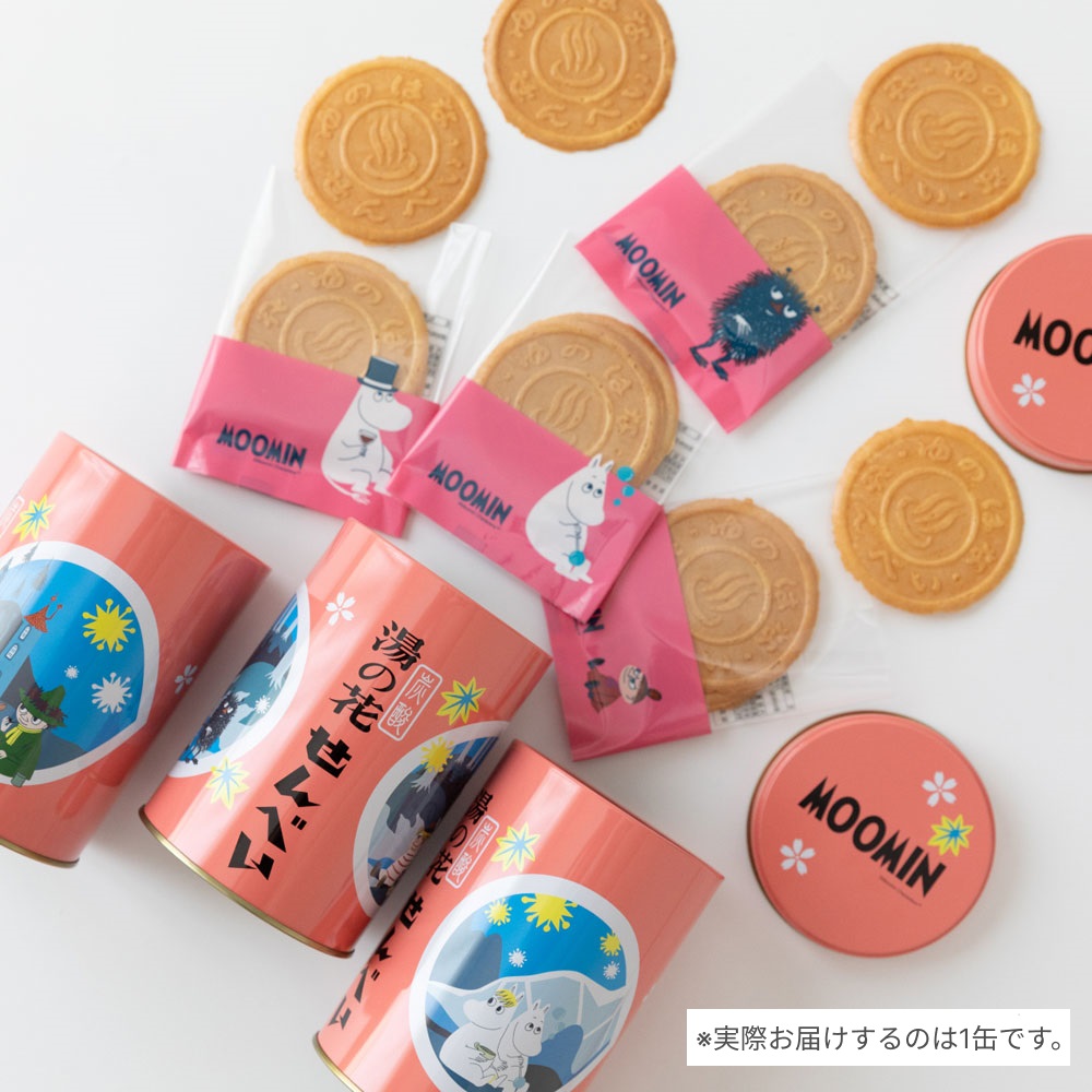 2025年に80周年を迎える「MOOMIN」と、温泉銘菓「湯の花せんべい」の期間限定コラボパッケージです。半世紀以上変わらないデザインで愛される湯の花せんべいにムーミン谷の物語を織り交ぜた3種類のパッケージが登場です。中身はせんべい3枚入の個包装になっており、個包装にも4種類のムーミンキャラクターが登場します。昔ながらの製法で作られる炭酸せんべいはサクサク軽くほのかな甘みが特徴です。缶のデザインは「ムーミンファミリーCAN」「リトルミイ&スナフキンCAN」「ムーミンフレンズCAN」からお選びいただけます。