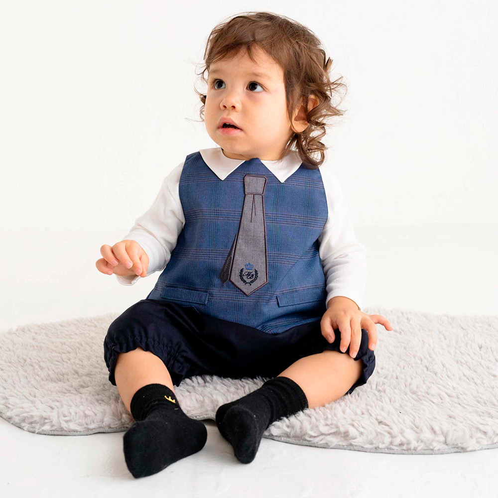 生まれたての赤ちゃんにも上質な体験を届けるモンシェリべべ。セレモニー服をイメージしたネクタイ付きベスト風スタイとパンツのセットは、着脱も簡単なマジックテープとほどよい丈はお出かけにもぴったり。スタイの内側に入った撥水シートで汚れにくいのも嬉しい。新生児のギフトにおすすめ。