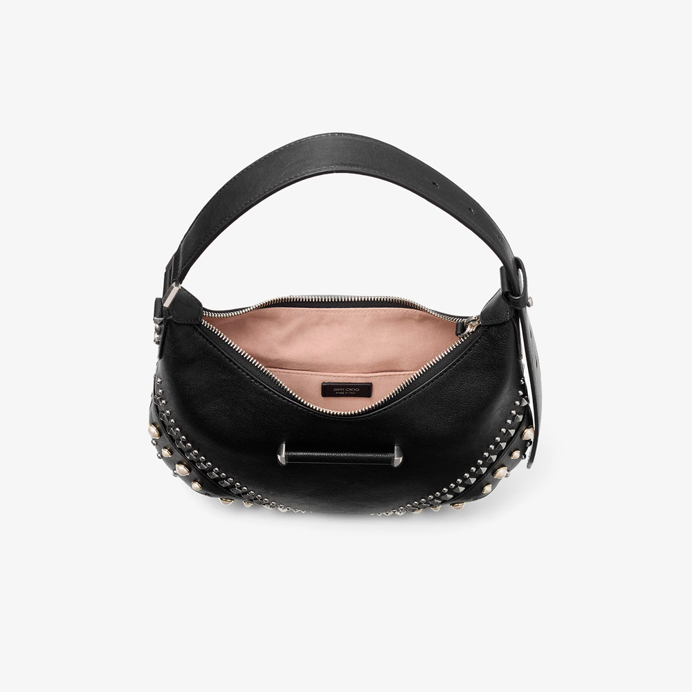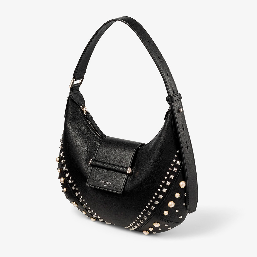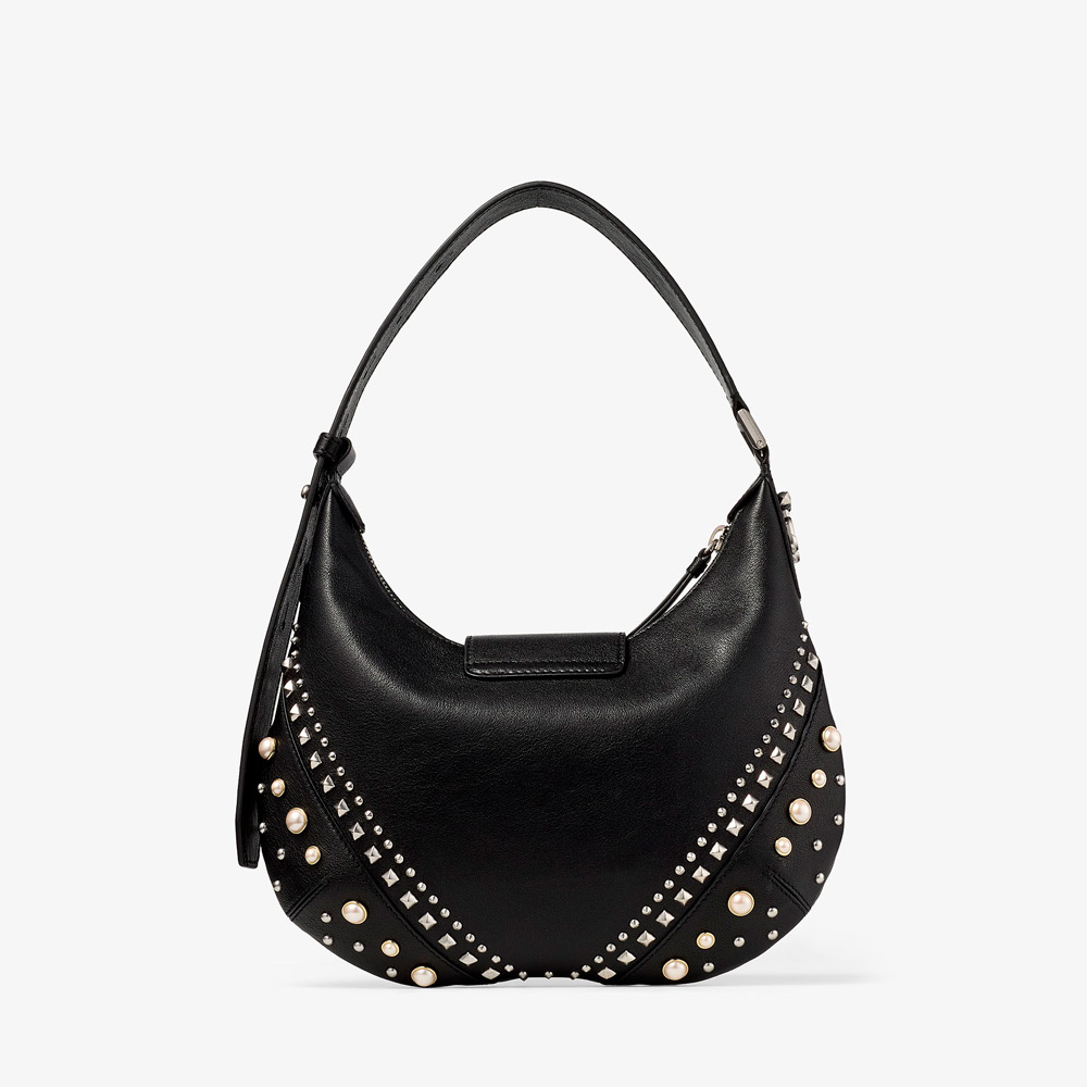 バー ホーボーは「バー」のクロージャーをその名の由来とし、同系色のレザーでくるんだゴールドのハードウェアが個性的なデザインです。シームステッチが、モダンでタイムレスなシルエットにテーラードのディテールを添えています。パールスタッズで装飾を施したバイカーレザーを使用し、調節可能なショルダーストラップ、ジッパー式開閉、内側はレザーライニング、整理整頓に便利なサイドポケットも備えています。