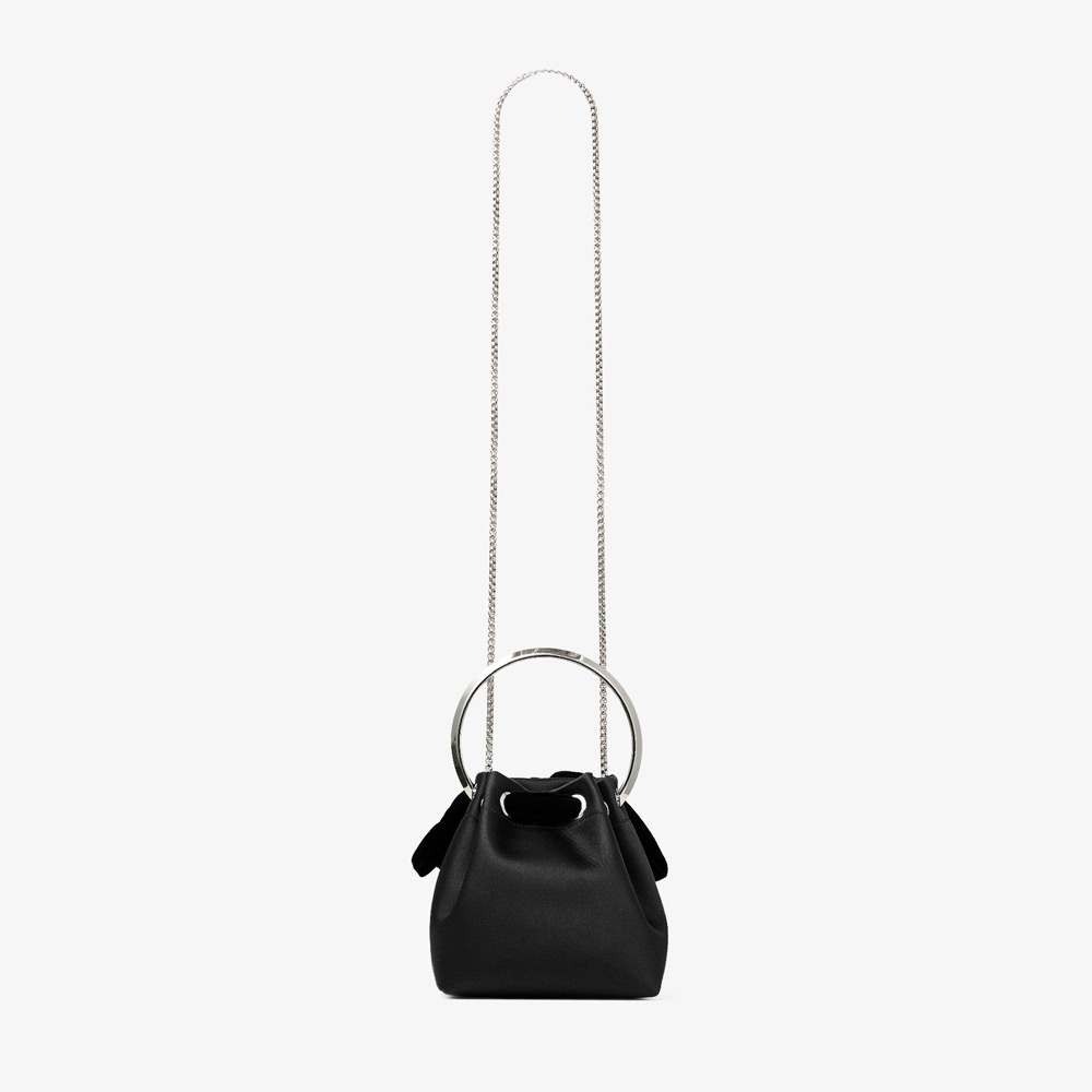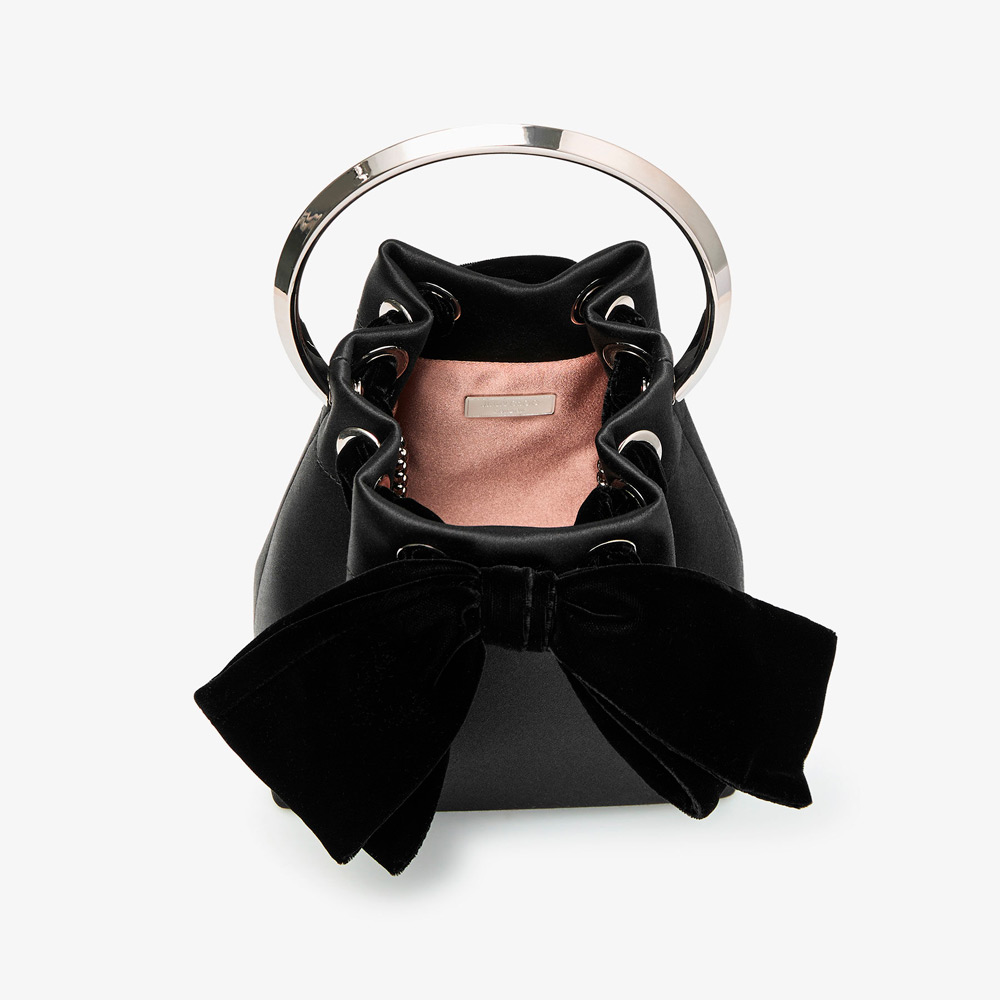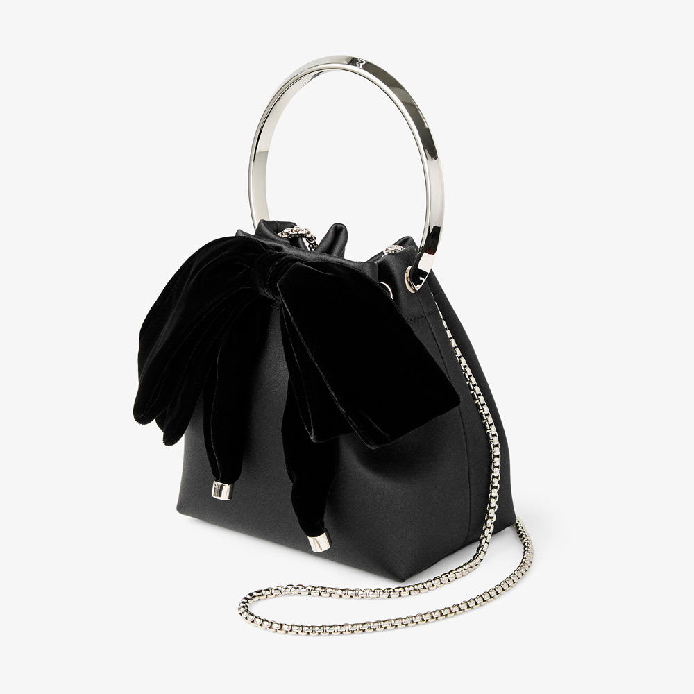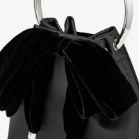 ハードとソフト、甘さと大胆さという、対照的な要素からインスピレーションを得たこのバッグは、なめらかなサテンにふんわりとしたベルベットのボウをあしらった存在感抜群のアイテム。コンテンポラリーなバケットシルエットにブレスレットハンドルを配した、アイコニックなバッグです。この多機能なデザインは、チェーンショルダーストラップ付きで、イブニングの装いに多彩なスタイリングの選択肢を提供します。