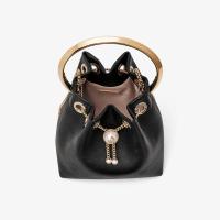 ハードでありながらソフト、スイートでありながら大胆というコントラストにインスピレーションを得たステートメントアイテムのボン ボンバッグ。モダンなバケットシルエットにブレスレットハンドルを配した、アイコニックなバッグ。チェーンショルダーストラップを活用してクロスボディとしてもハンドバッグとしても楽しめ、幅広いシーンで活躍します。