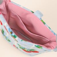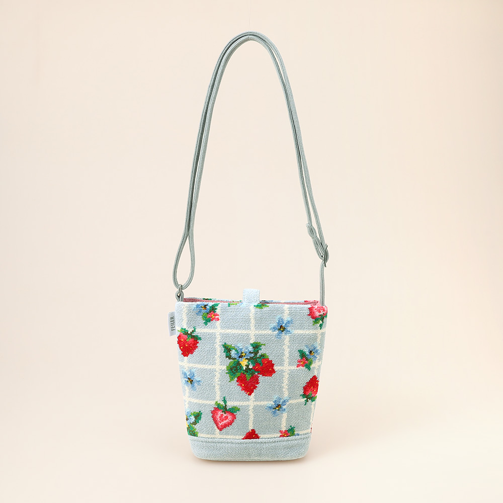 小ぶりに見えて、長財布、スマホが入るサイズ感です。ちょっと近所にお買い物に行くときに最低限の荷物を入れて身軽にお出かけができます。旅行では身の回りの品をこちらにコンパクトにまとめて身に着けるのも便利です。※苺の束が一つは入ります。