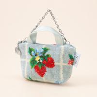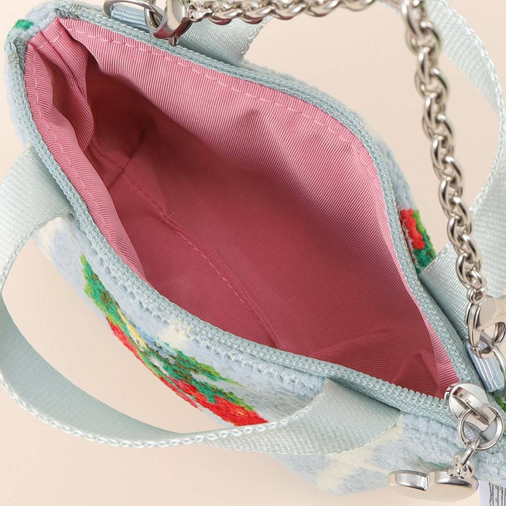 小さなトートバッグ型のチャームポーチです。バッグに取り付けてアクセントにしていただくのもおススメです。チェーンは取り外し可能です。ミニサイズながらマチがあるので、リップや鍵、薬などを入れてポーチとしても十分お使いいただけます。※前面に苺の束が入ります(1柄)
