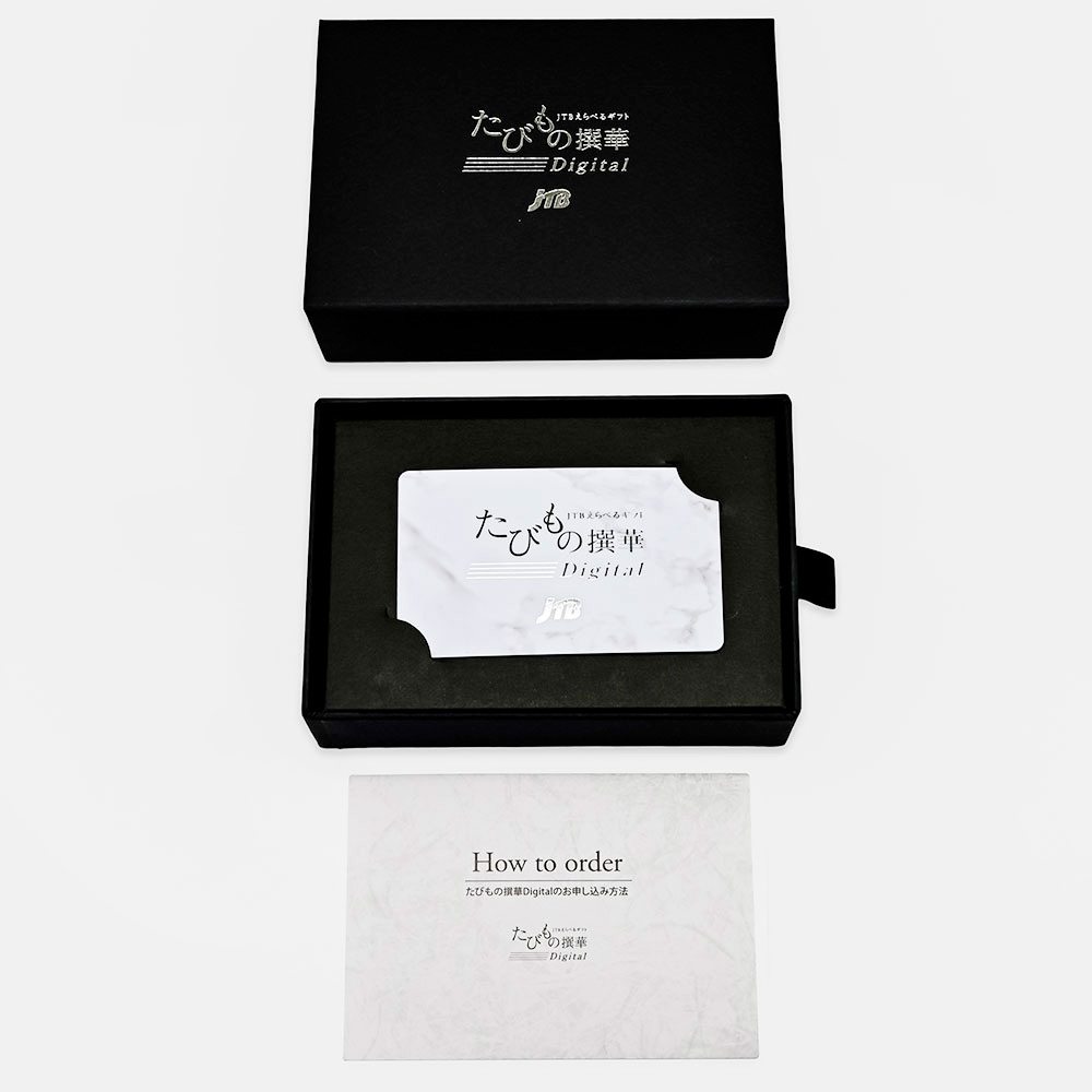 旅のプロJTBが選んだ温泉旅館やホテル、観光からお好きな旅プランを選べます。シリーズ最上級コースで、ハイクラスな施設・客室、品物を厳選しました。贈られた方がご都合に合わせて宿やレストランを予約できます。ほかにも選りすぐりのグルメや高級家電・インテリアなど豊富にラインナップしているので、先様の好みを気にせずに贈れます。また有効期限はカード発送日から1年間あるので、贈られた方もゆっくりとお選びいただけます。カードタイプのギフトカタログは軽量コンパクトで持ち運びやすいデザイン。遠方からの大切なゲストに、引き出物や内祝いの品として直接手渡しする時にもスマートです。掲載商品の注文は専用Webサイトにアクセス。24時間どこからでも商品が閲覧でき、ハガキを投函する必要もなくご注文いただけます。